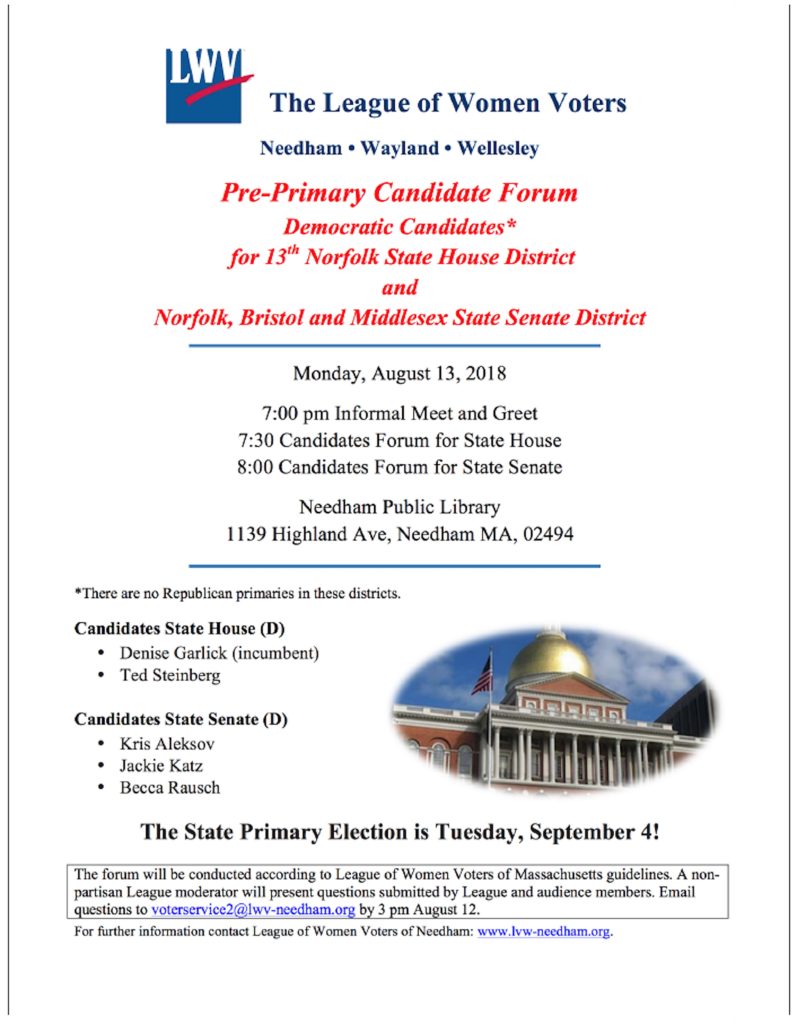 The League of Women Voters Presents the Pre-Primary Candidate Forum on August 13th